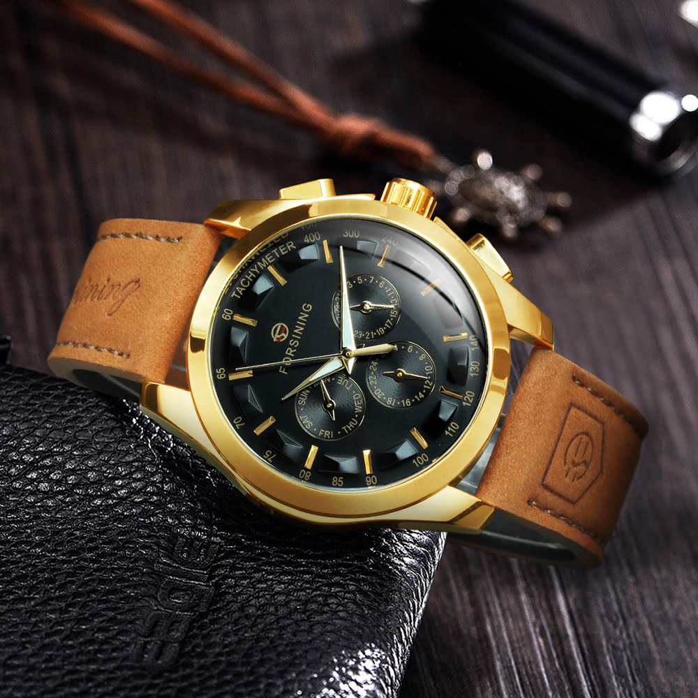Forsining Wasserdichte automatische mechanische Uhr für Herren Lederarmband Luxus Sport Herren Armbanduhren