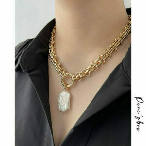 Peri’sBox Large Square Natural Freshwater Pearl Pendant Chunky Chain Necklace for Women Vintage Elegant Baroque Pearls Necklaces