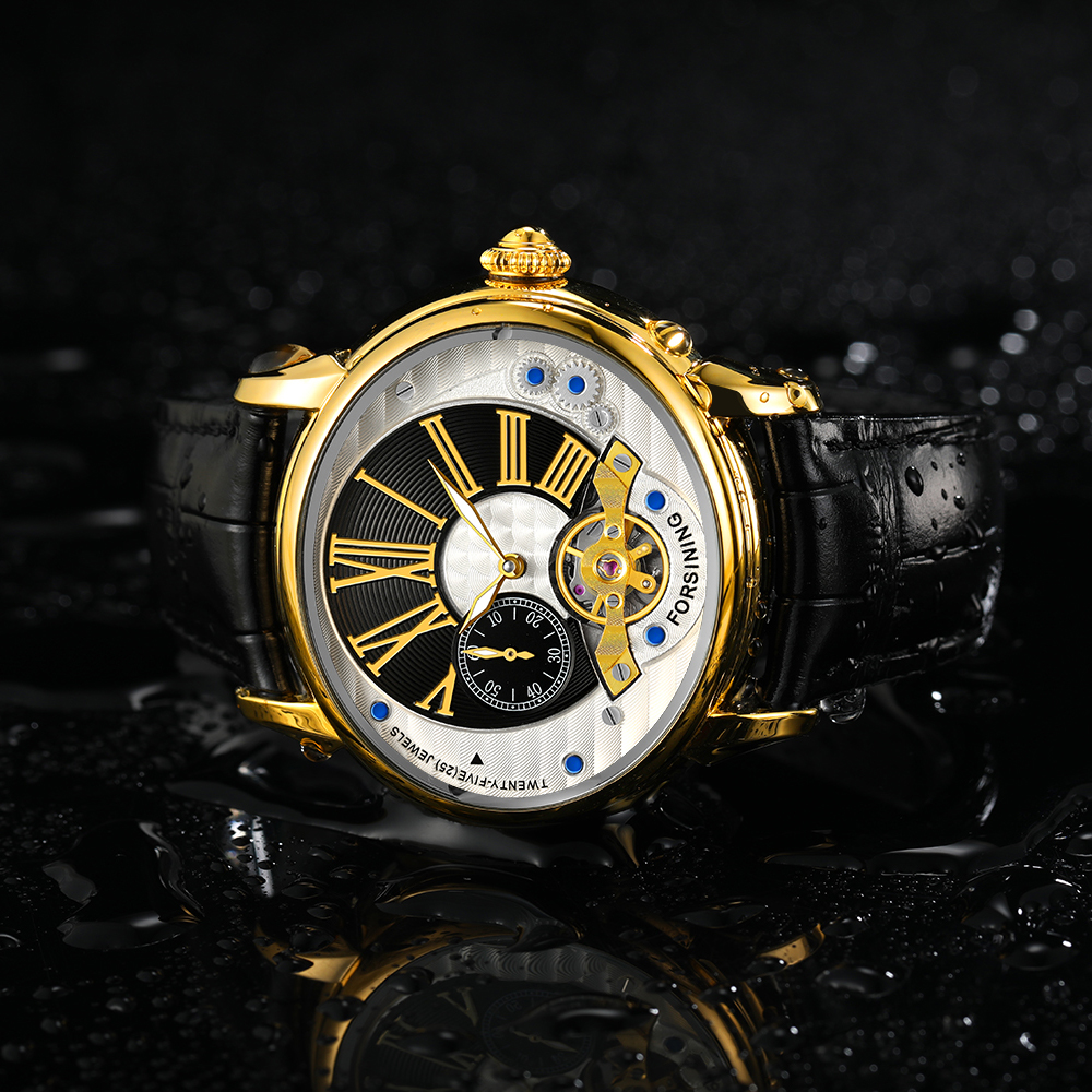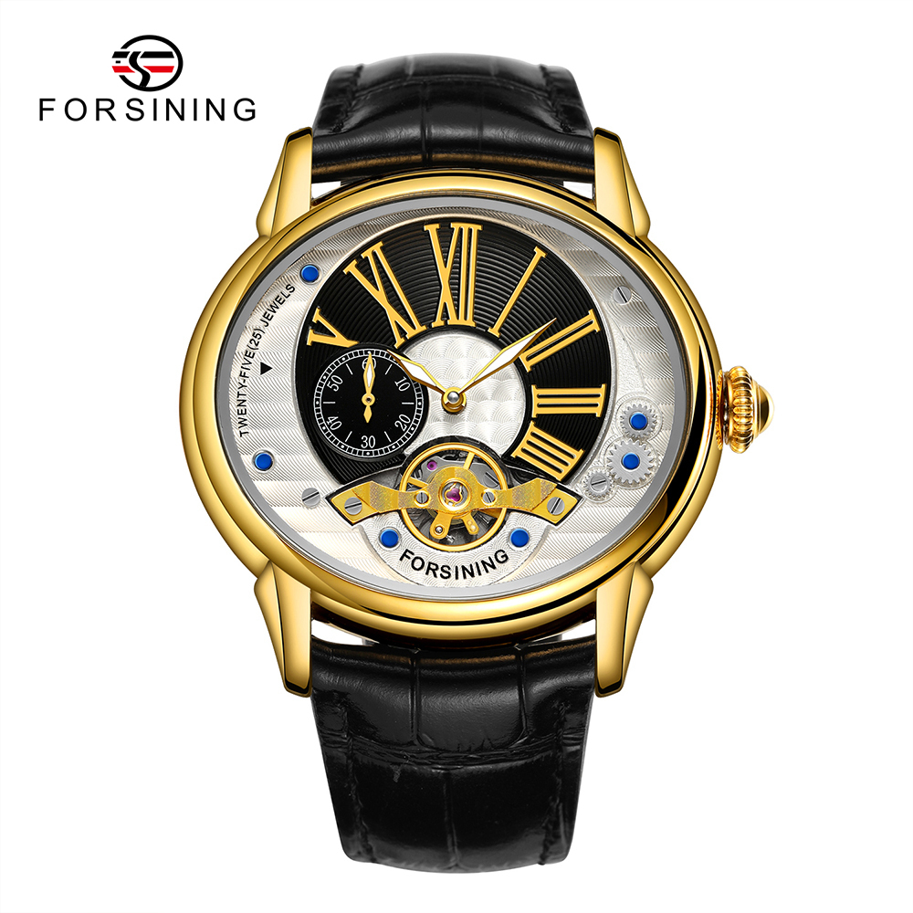 Forsining Wasserdichte automatische mechanische Uhr für Herren Lederarmband Luxus Sport Herren Armbanduhren