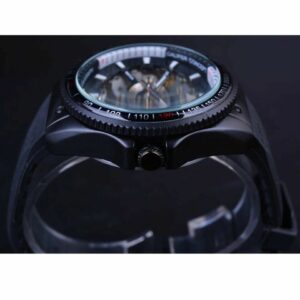 Forsining Marke Schwarz Männlich Mechanische Uhren Automatische Multifunktions Mondphase Datum Racing Sport Stahlband
