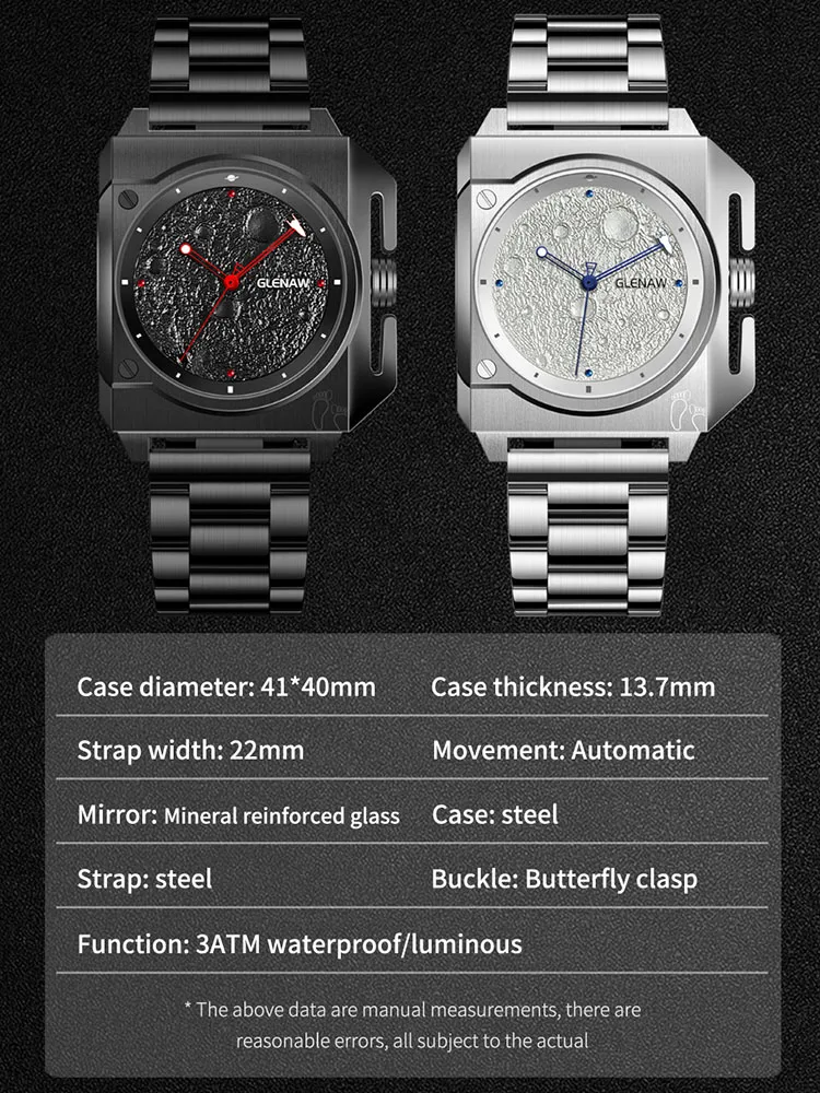 Herrenuhr Automatik Edelstahl Quadrat 41mm für Herren Leuchtzeiger 3ATM Zifferblatt