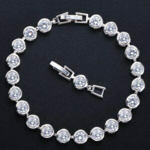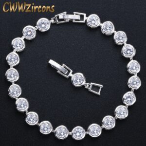 Cwwzircons klassische silberfarbe runde glänzende kubische zirkoniale brauthochzeitsfeier ennisarmbänder juwely für Frauen cb075