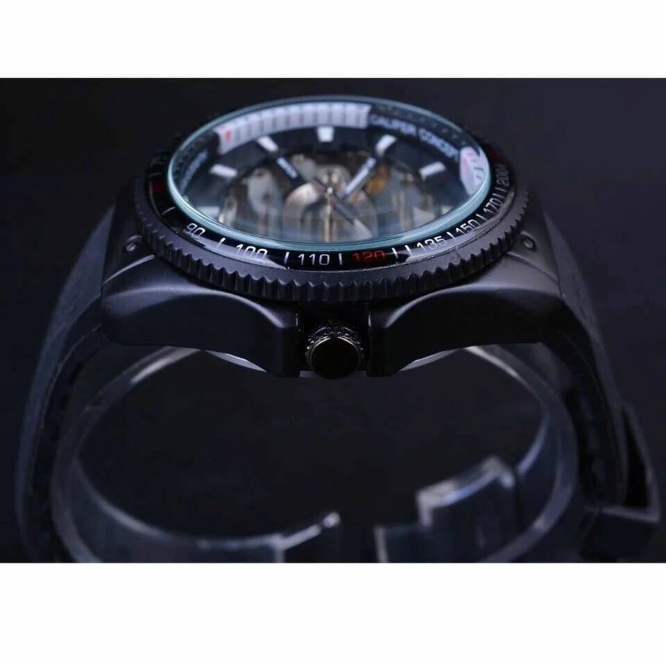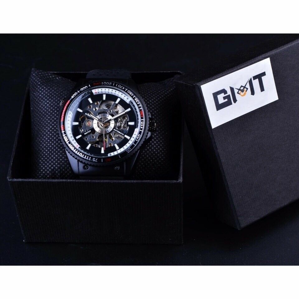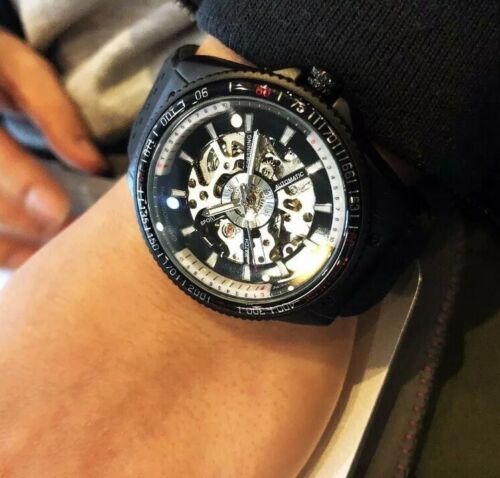 HERREN ARMBANDUHR mechanisch Gummi Armband Handaufzug Uhr Sport Wasserfest