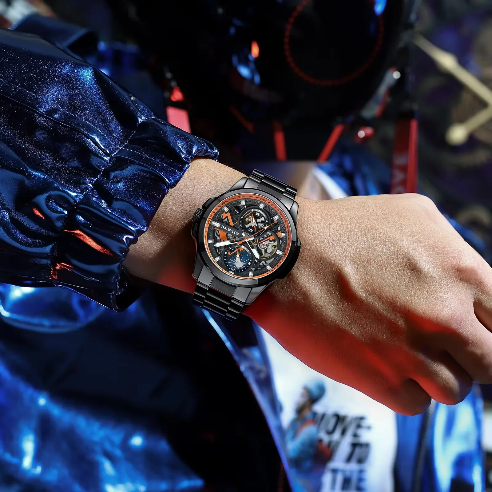 Das skelettierte Zifferblatt gibt den Blick auf das präzise Automatikwerk frei – für ständige Bewunderung.