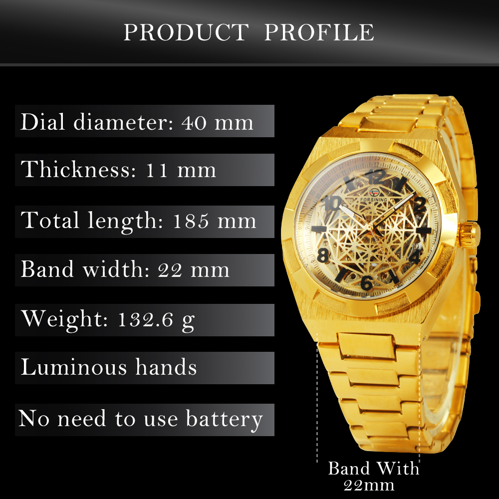 Herren Gold Skelett Automatikuhr Edelstahlarmband | Luxusmarke | Leuchtend