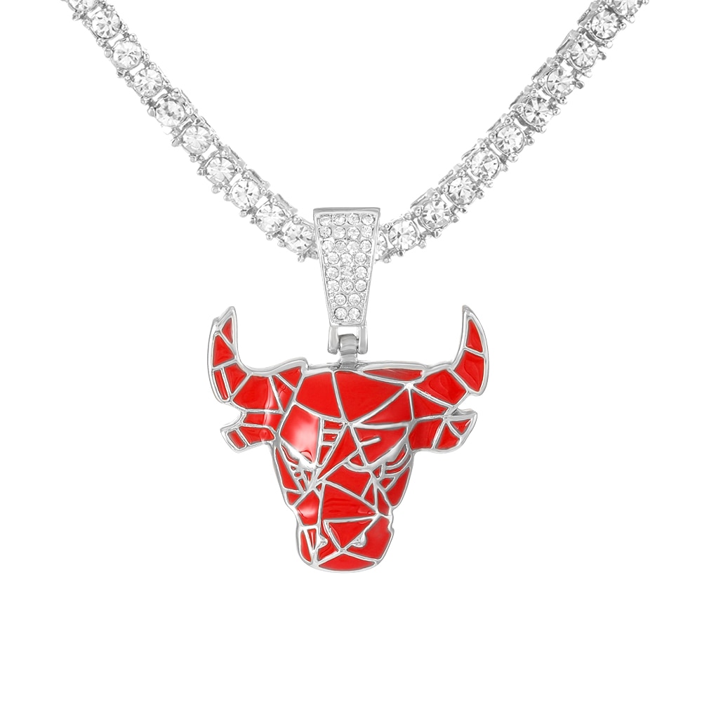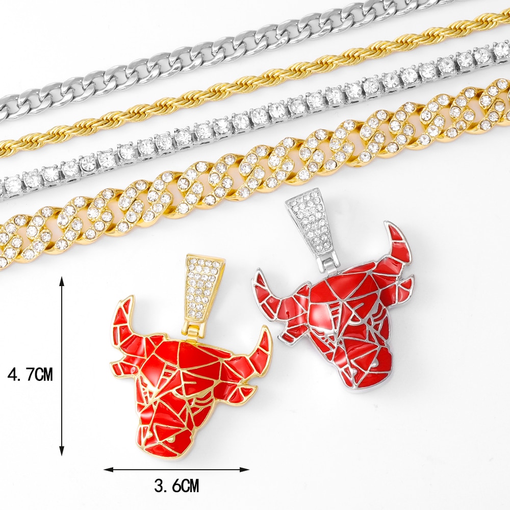 hip-hop trendy personality pendant fashion retro micro-inlaid zircon bull head pendant necklace with 10MM Cuban chain