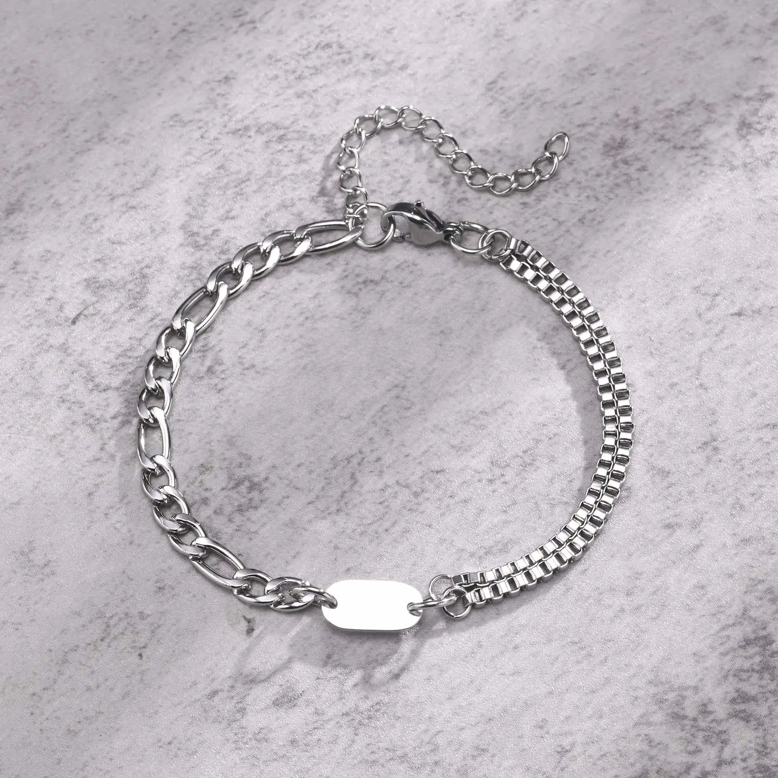 Initial Armband mit Buchstabe A-Z, Figaro-Kette & Box-Glieder, Geschenk für Ihn & Sie