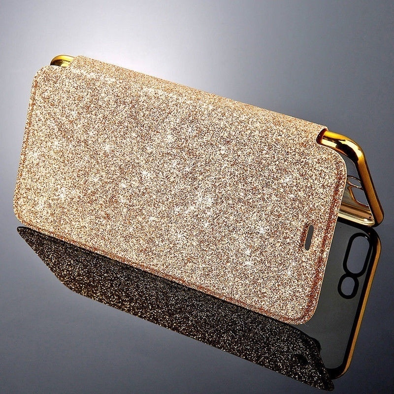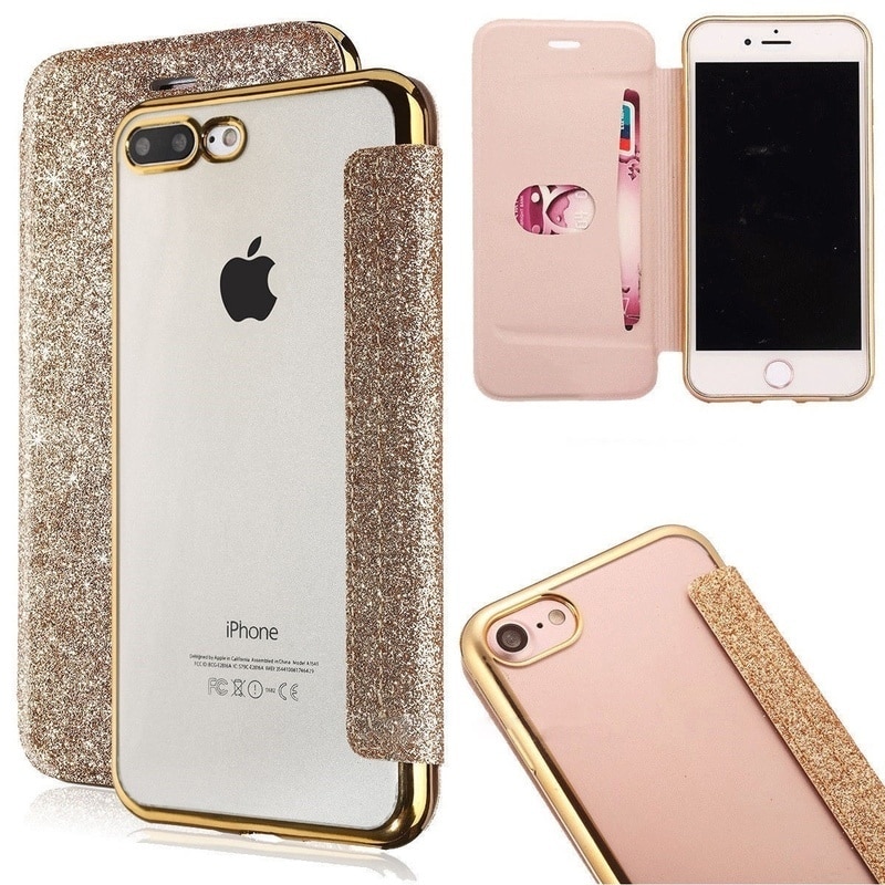 iPhone Flip Wallet Clear Back Soft TPU Bling Glitter Case Cover