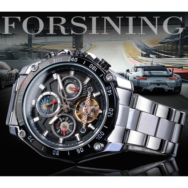 FORSINING Herren Armbanduhr Automatische Mechanische Skelett Uhr Edelstahlarmband