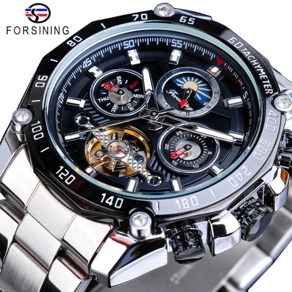 Forsining Automatikuhr Herren Mechanisch Silber Edelstahl Mondphase Automatik