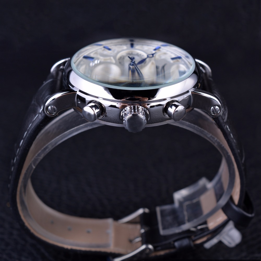 Forsining Automatische Mechanische Armbanduhr Uhren Herrenuhr Mondphase Echtleder