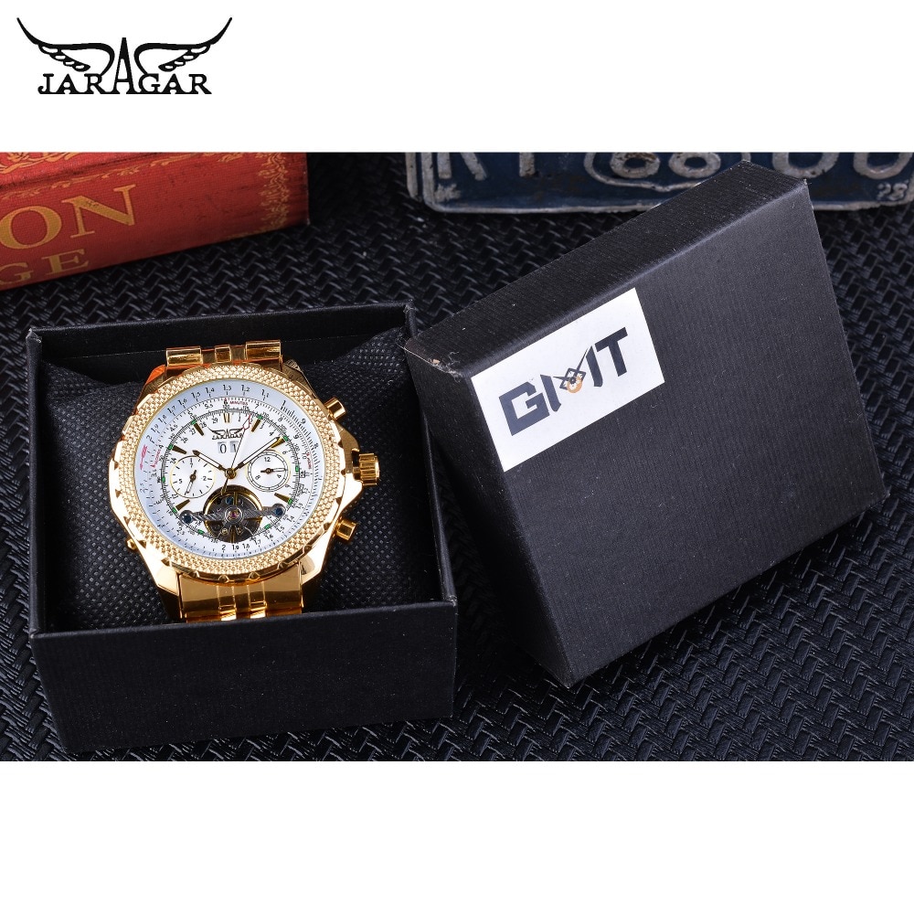 Jaragar Men’s Golden Automatic Self-Wind Watch Big Dial Calendar Function Relogio Masculino Mechanical Watches Steel Strap Clock
