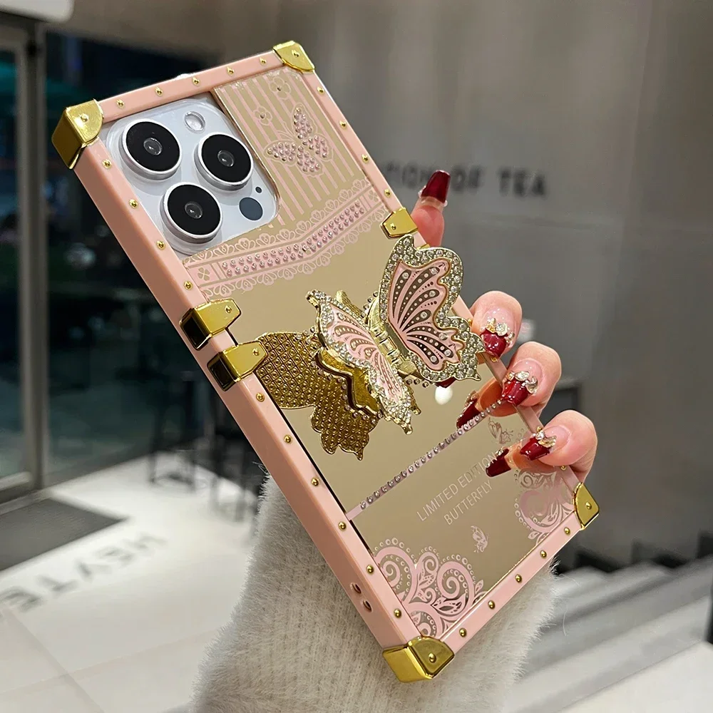 Limited Edition Schmetterling Handyhülle mit Spiegel & Ständer für iPhone 16 15 Pro Max Case