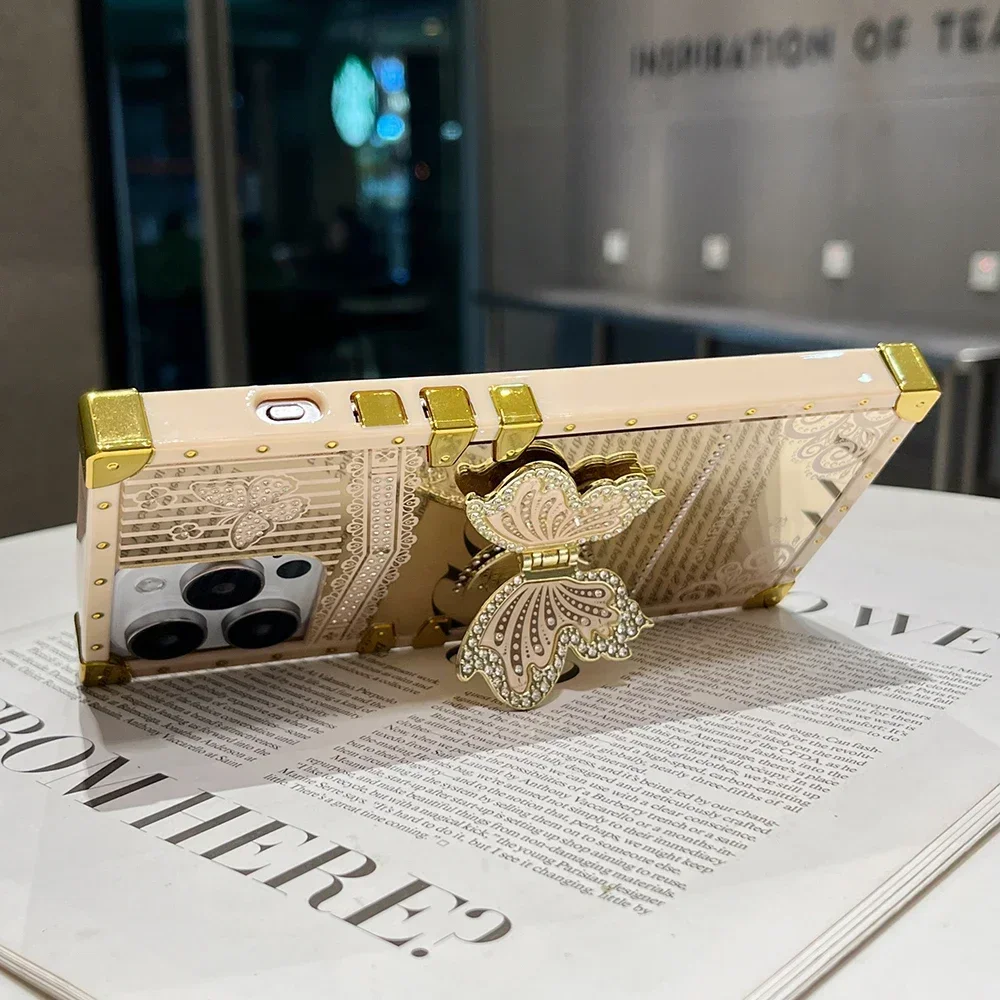 Limitierte Schmetterlings‑Hülle mit Spiegel und Ständer — stilvoller Schutz für iPhone‑Pro‑Max.
