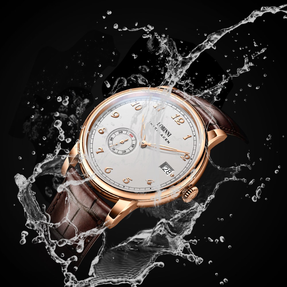 Lobinni Herrenuhr mit Automatikwerk, Datum Anzeige, separater Sekundenanzeige und Leder Band