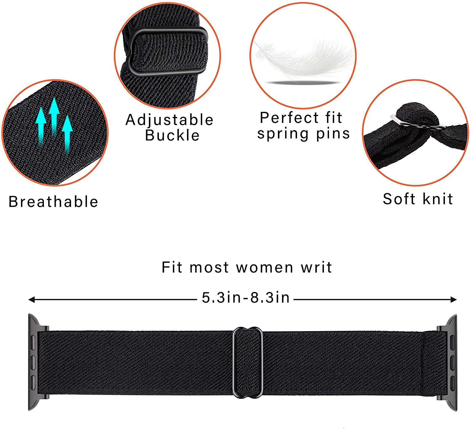 The Upgraded design of the Luxury Fashionable Elastic Nylon solo Loop Watch Band for Apple Watch gives you a fashionable look from your daily life to outdoor adventure. Its super elastic nylon fabric makes the band soft, comfortable, and breathable.