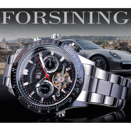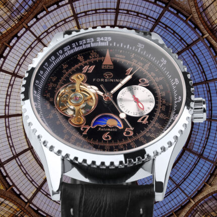 Forsining Luxus Skelett Automatikuhr mit Transparentem Gehäuse & Echtlederband