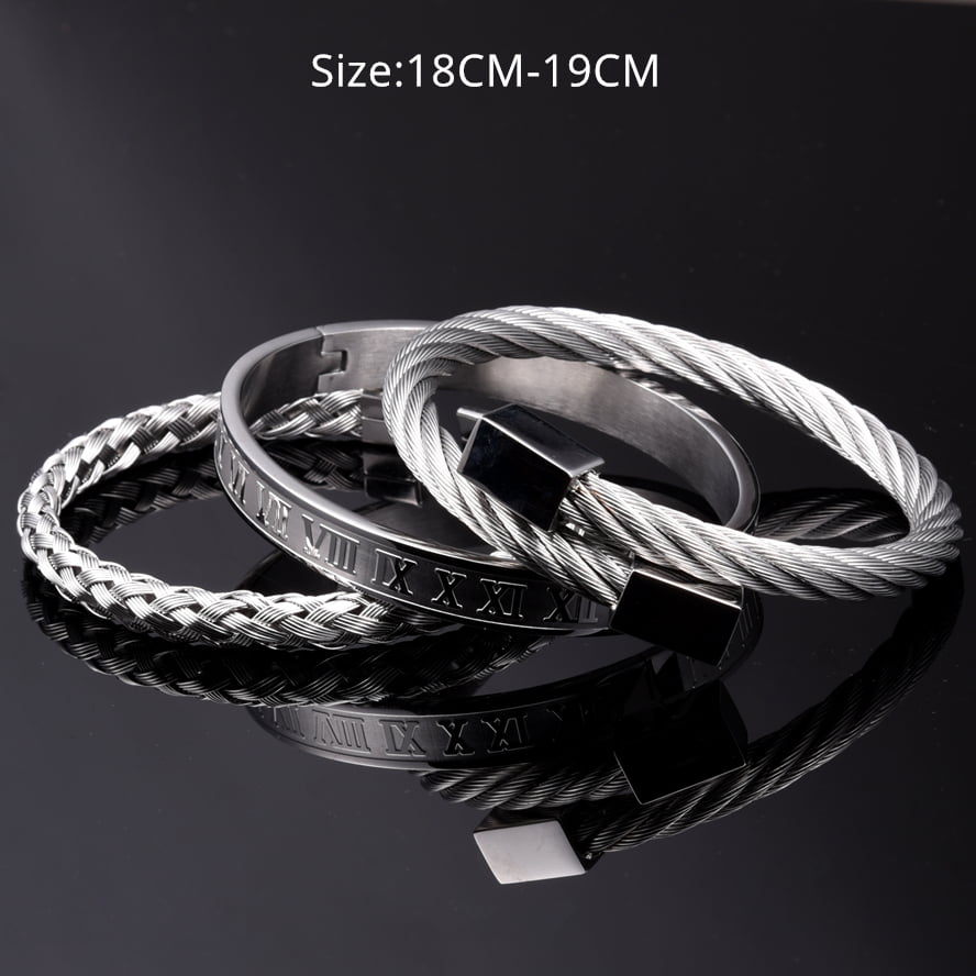 Luxury Roman Number Charm Woven Stainless Steel Bracelet Hip Hop Men Jewelry Gold Color Jewelry For Men