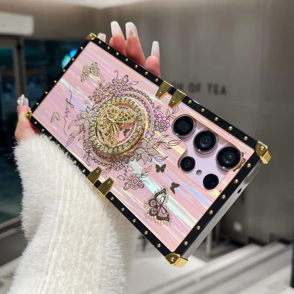 Schützen Sie Ihr Smartphone mit Stil – der integrierte Schmetterlings-Ringhalter bietet sicheren Griff und dient als praktischer Standfuß.