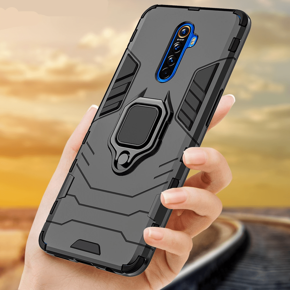 Das Shockproof Case für Realme X2 Pro, XT 5 6 Pro, 3 X50 C2 und OPPO F11 Pro, A9, A5 2020, A52, Reno 3 2 Z, K1 und A1K ist ein hochwertiges Handy-Case, das dafür entwickelt wurde, Ihr Handy optimal zu schützen. Das Case besteht aus weichem Material, das einen angenehmen Griff bietet und stoßfest ist, um Ihr Handy vor Stürzen und Erschütterungen zu schützen. Das Case verfügt auch über einen eingebauten Magnet-Metallring-Ständer, der als Ständer oder Griff verwendet werden kann und perfekt zum Anschauen von Videos oder Aufnehmen von Bildern ist.