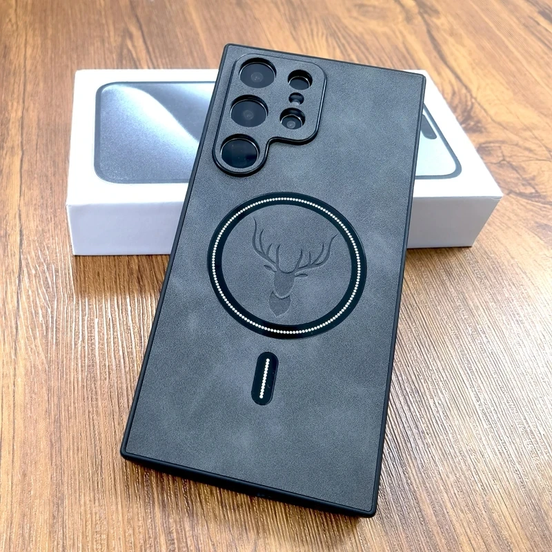 MagSafe Handyhülle für Samsung Galaxy S24 S23 Kunstleder Cover mit Hirsch Motiv