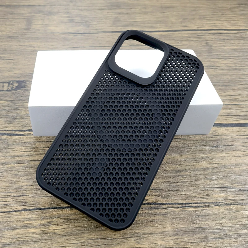 Das präzise Lochmuster fördert Luftzirkulation an der Rückseite — kann die Wärmeabfuhr unterstützen und sorgt für ein leichteres Gefühl in der Hand.
