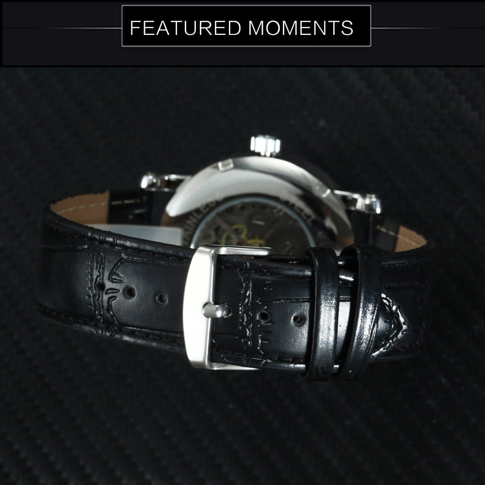 Automatikuhr Klassische Mechanische Uhr Klassische Armband Uhr Skelett Leder Band