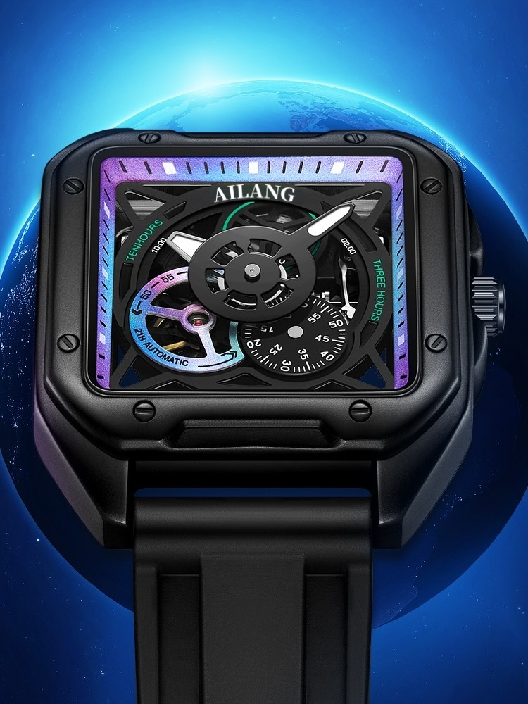 AILANG Luxus Automatikuhr für Herren, mit hochwertigem mechanischem Uhrwerk, hohlem Zifferblatt und wasserdichtem Design