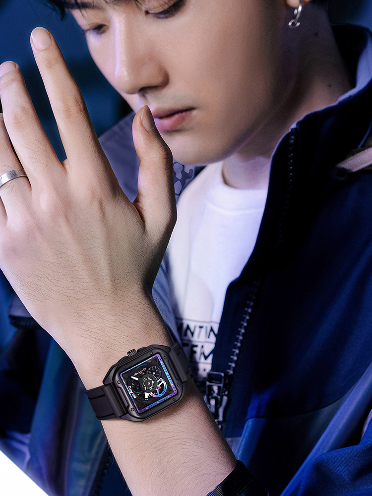 Herrenwache Doppelte Watch Automatic Hollow Machine Watch Silikongürtel Abschnitt Herren -Wasserprogramm