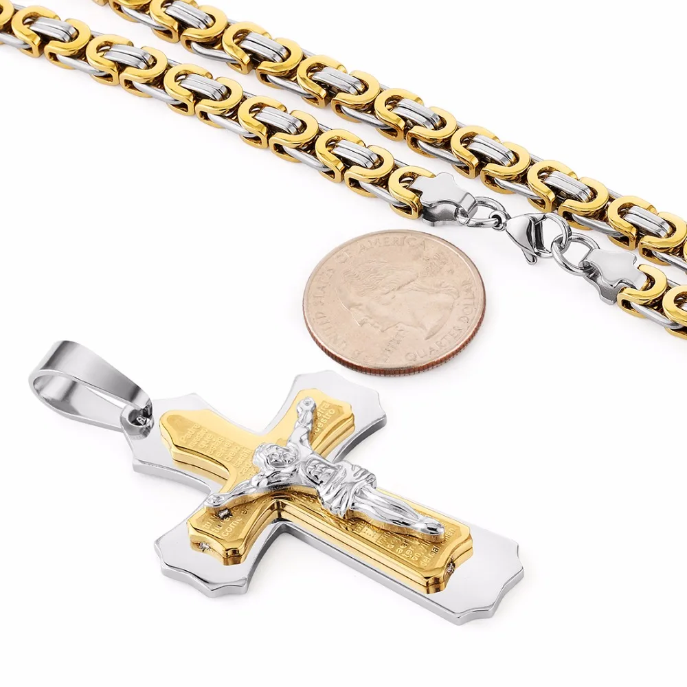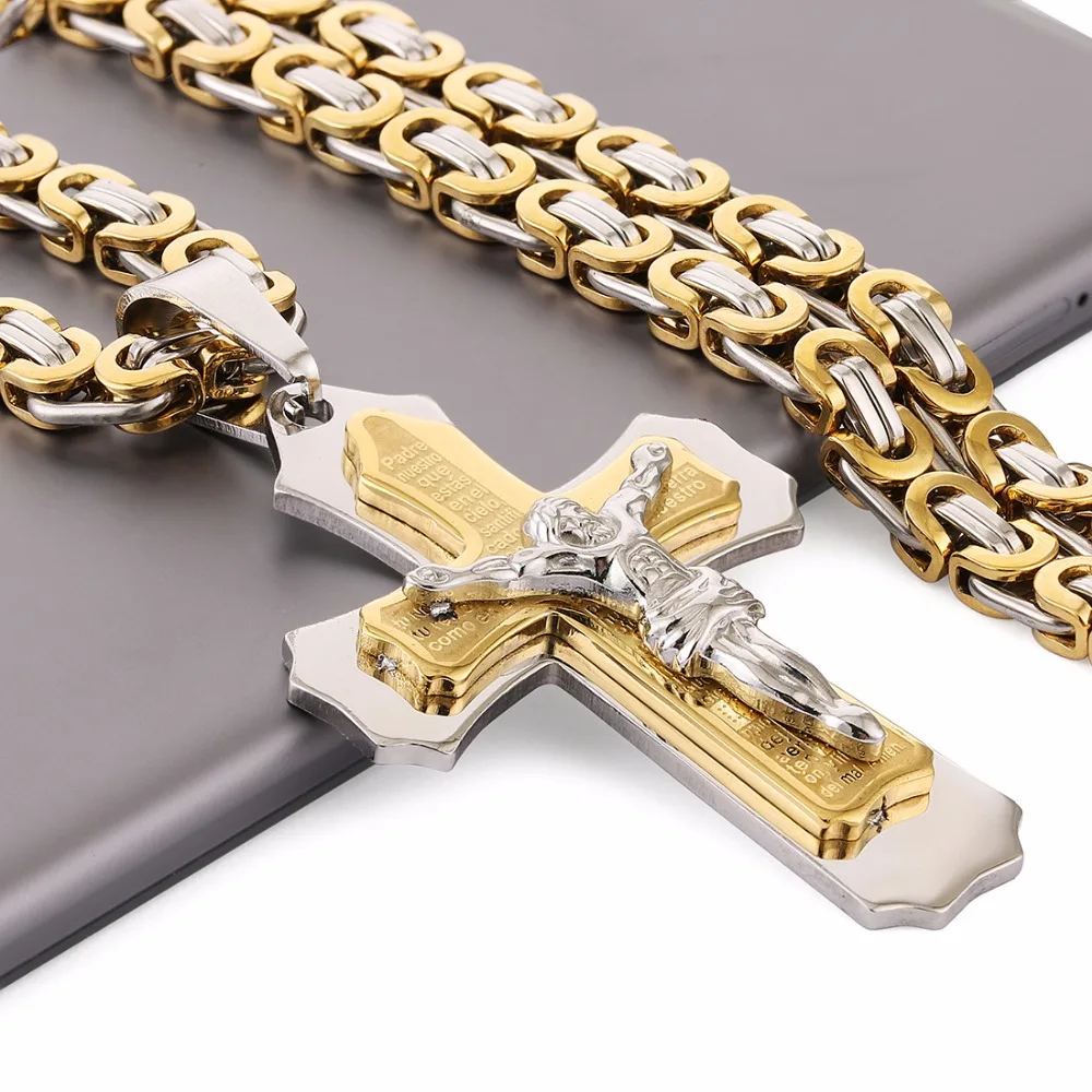 Halskette Herren Edelstahl Byzantinisch 6mm Jesus Kreuz Anhänger 55-70cm