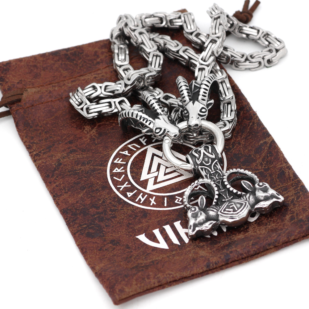 Stainless Steel Valknut Amulett mit Mjölnir Hammer Anhänger an Nordic Thor Ziegenkette – Königskette mit Geschenktasche