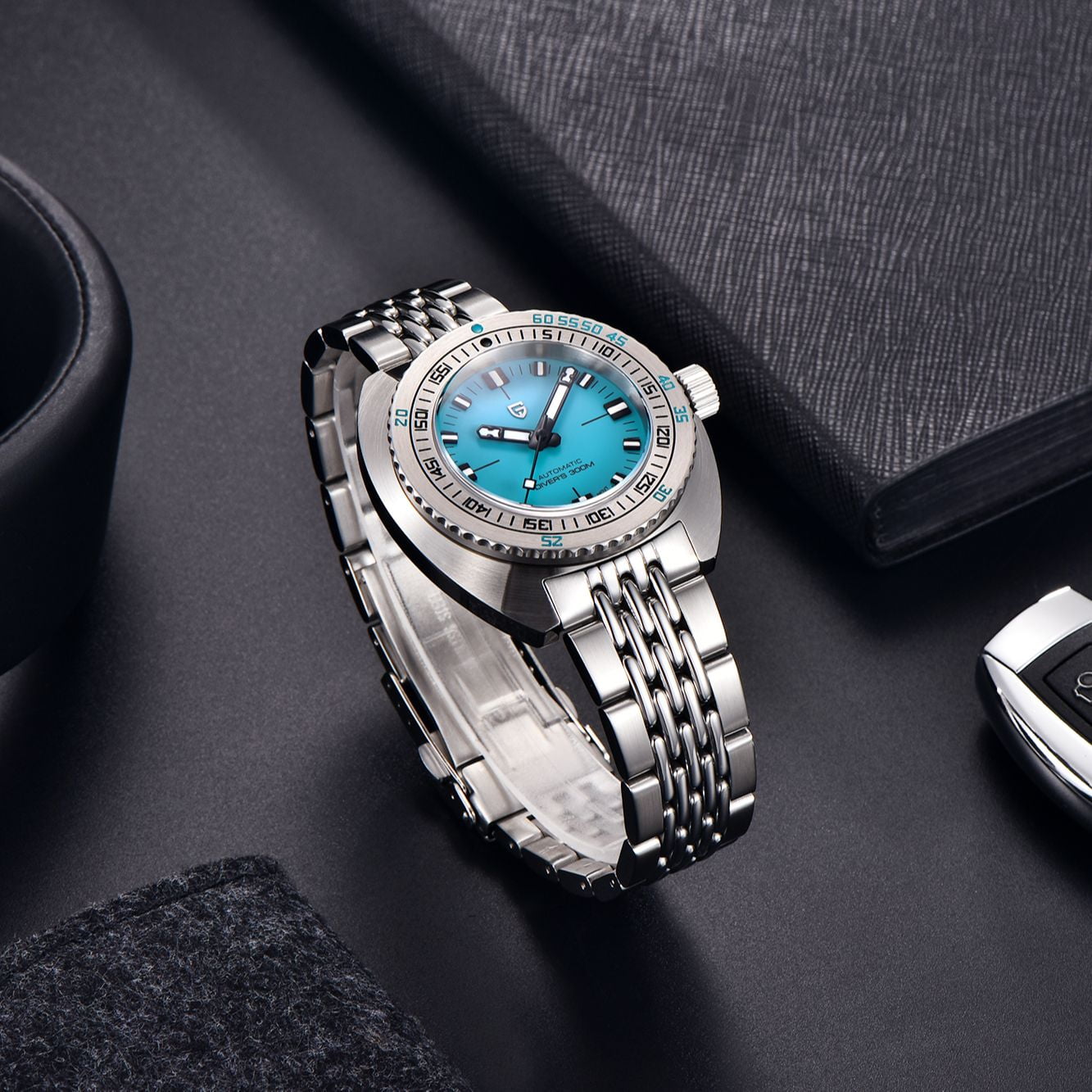 Der PD-1719 ist eine mechanische Herrenuhr, die von Pagani Design herausragenden Werken inspiriert wurde. Sie zeichnet sich durch ihren klassischen Abalone-Design aus und behält dabei alle ikonischen Details der Marke bei. Diese Vintage-Sports-Uhr ist ein perfektes Beispiel für moderne Erneuerung, ohne dabei ihren retro-traditionellen Charme zu verlieren.