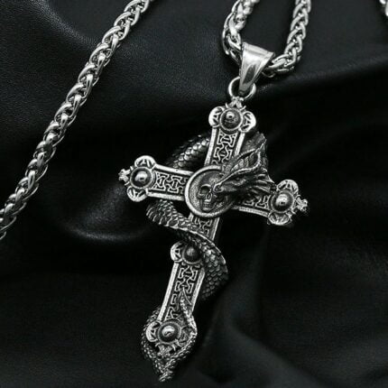 „Gothic Skull Cross Halskette aus Edelstahl – Punk Biker Men Skull Dragon Necklace Jewelry – Geschenkidee für Gothic Jewelry Fans!“