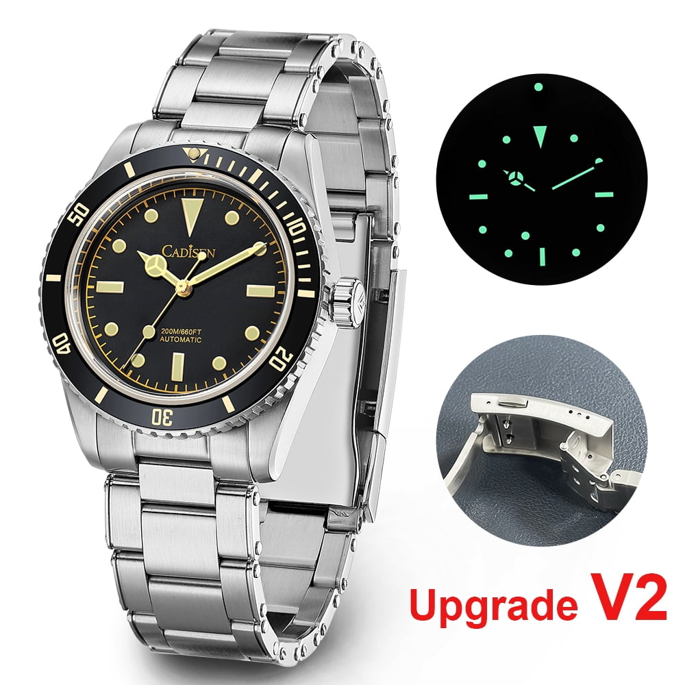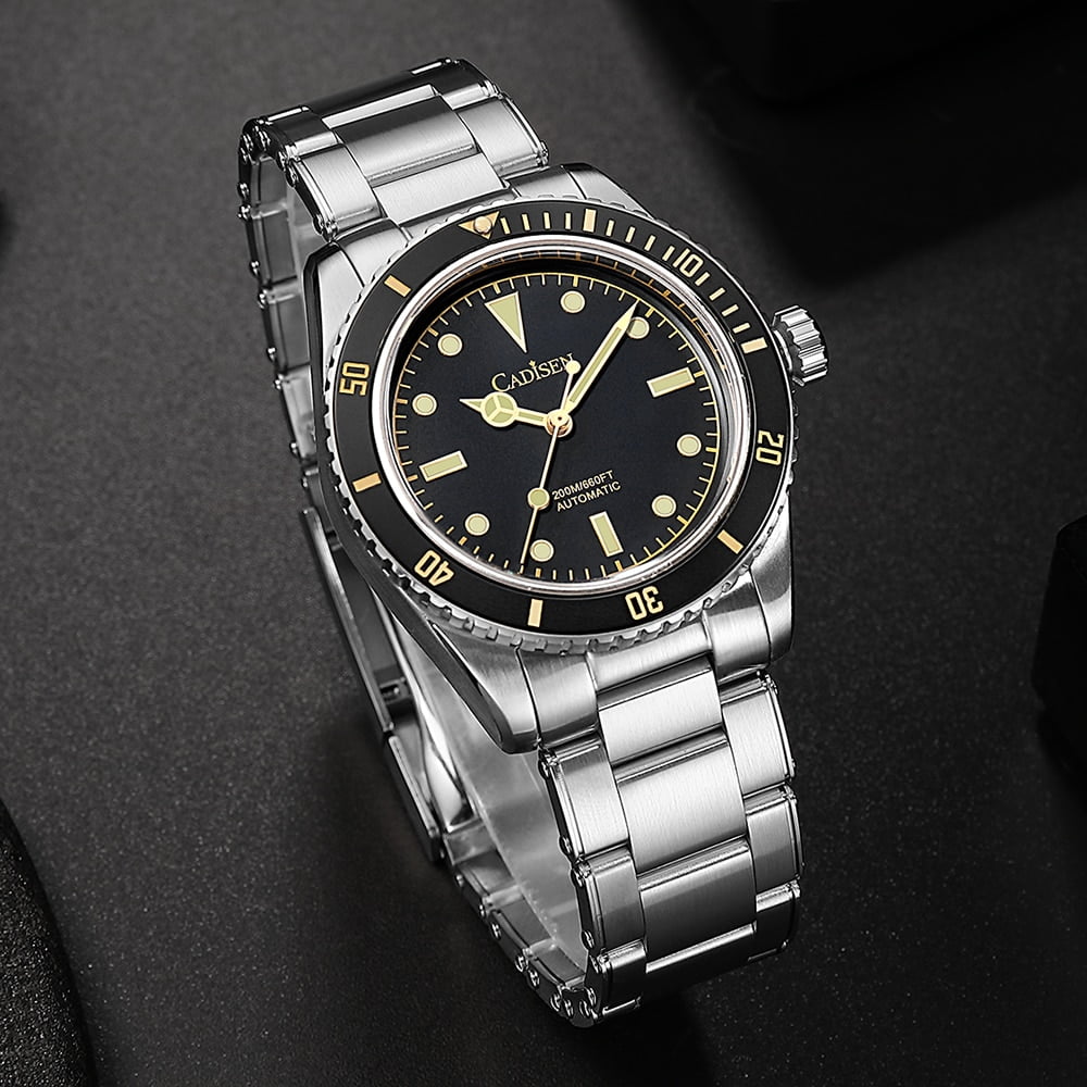 90 Clicks Chronograph Bezel, 12 o'clock Luminous Markers. |