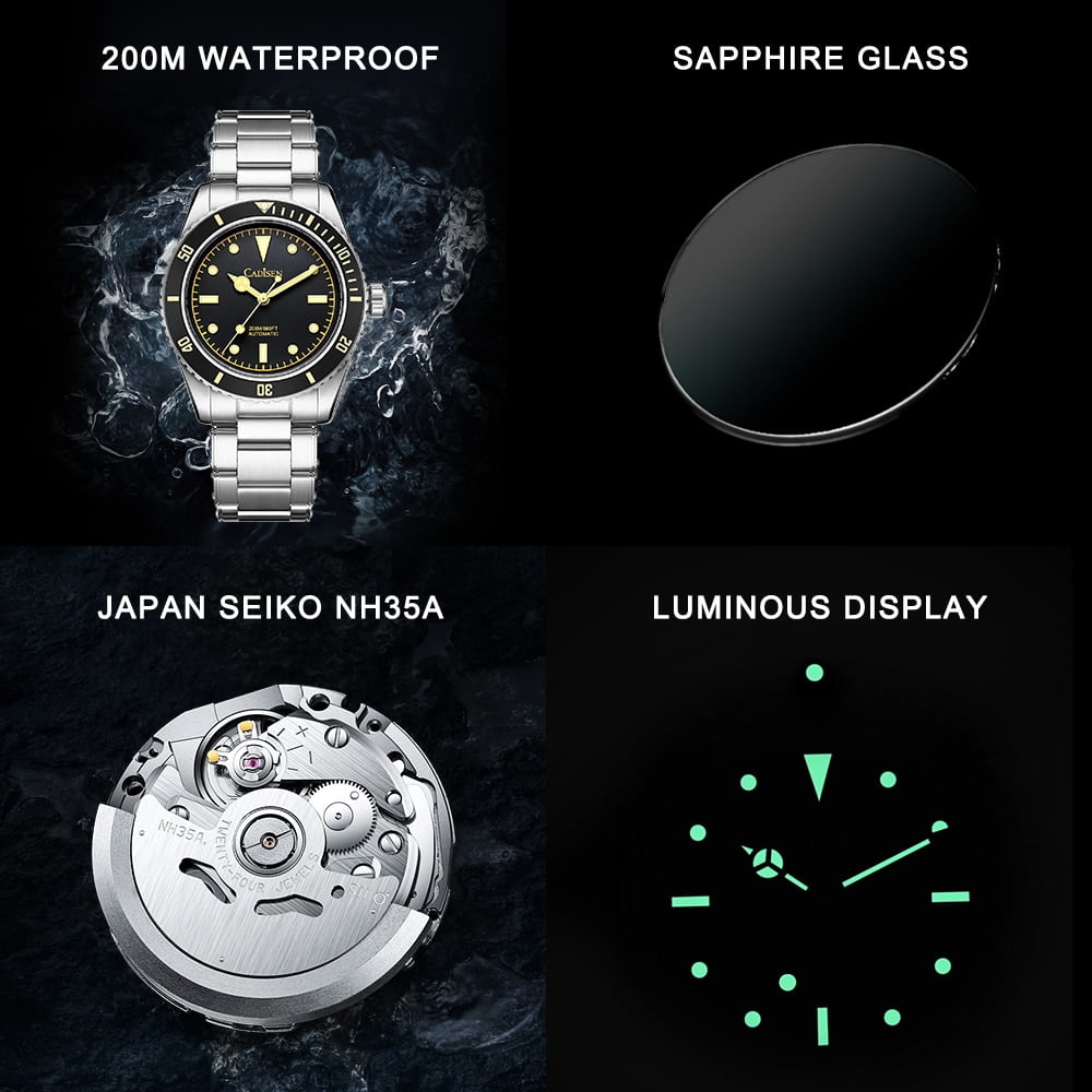 Präzise Auto Mech Uhr mit Saphir-Kristall, 200m Wasserdicht & Stilvollem Design