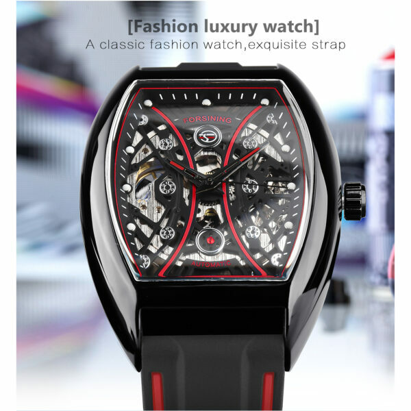 Forsining Mode Mann Luxus Rot Design Wasserdichte Automatische Mechanische Skeleton Uhren Leucht Mit Silikon Strap