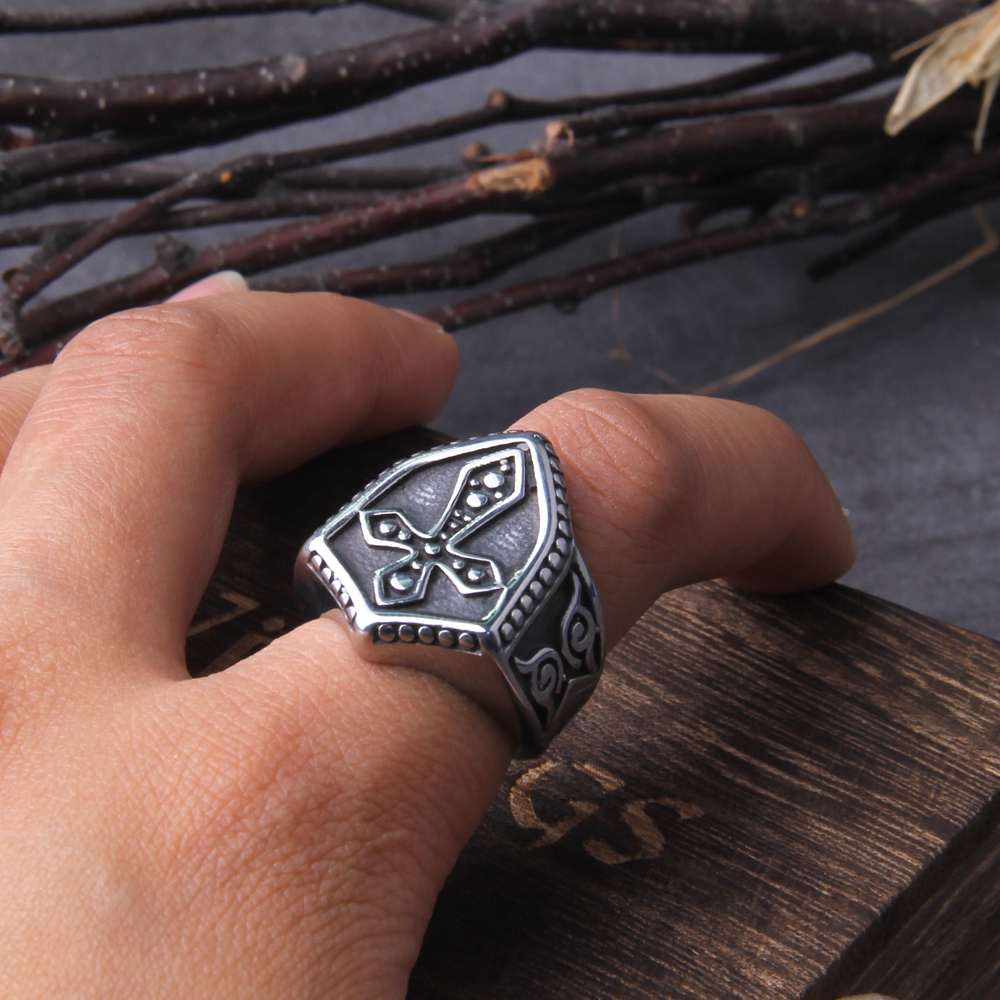 Ring Schmuck mit Holz Box Wikinger Edelstahl Krieger Schild Tempelritter Stil