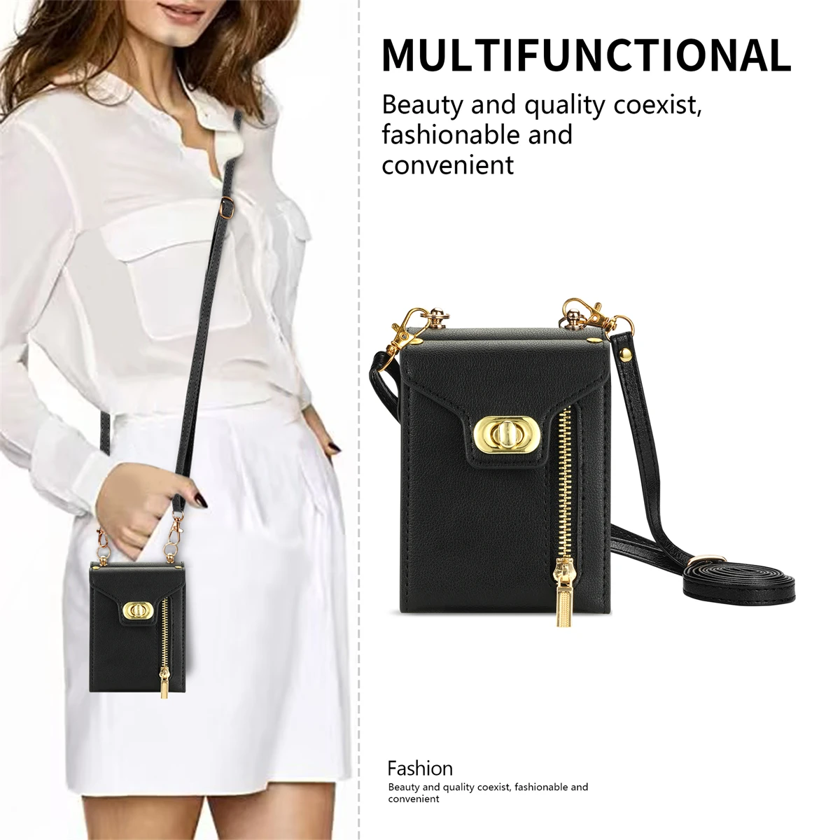 Vier klare Ansichten zeigen, wie Hülle, Kartenfächer und abnehmbare Umhängetasche zusammenspielen — ideal für schnelle Wege und Abendpläne, ohne Kompromiss bei Stil.