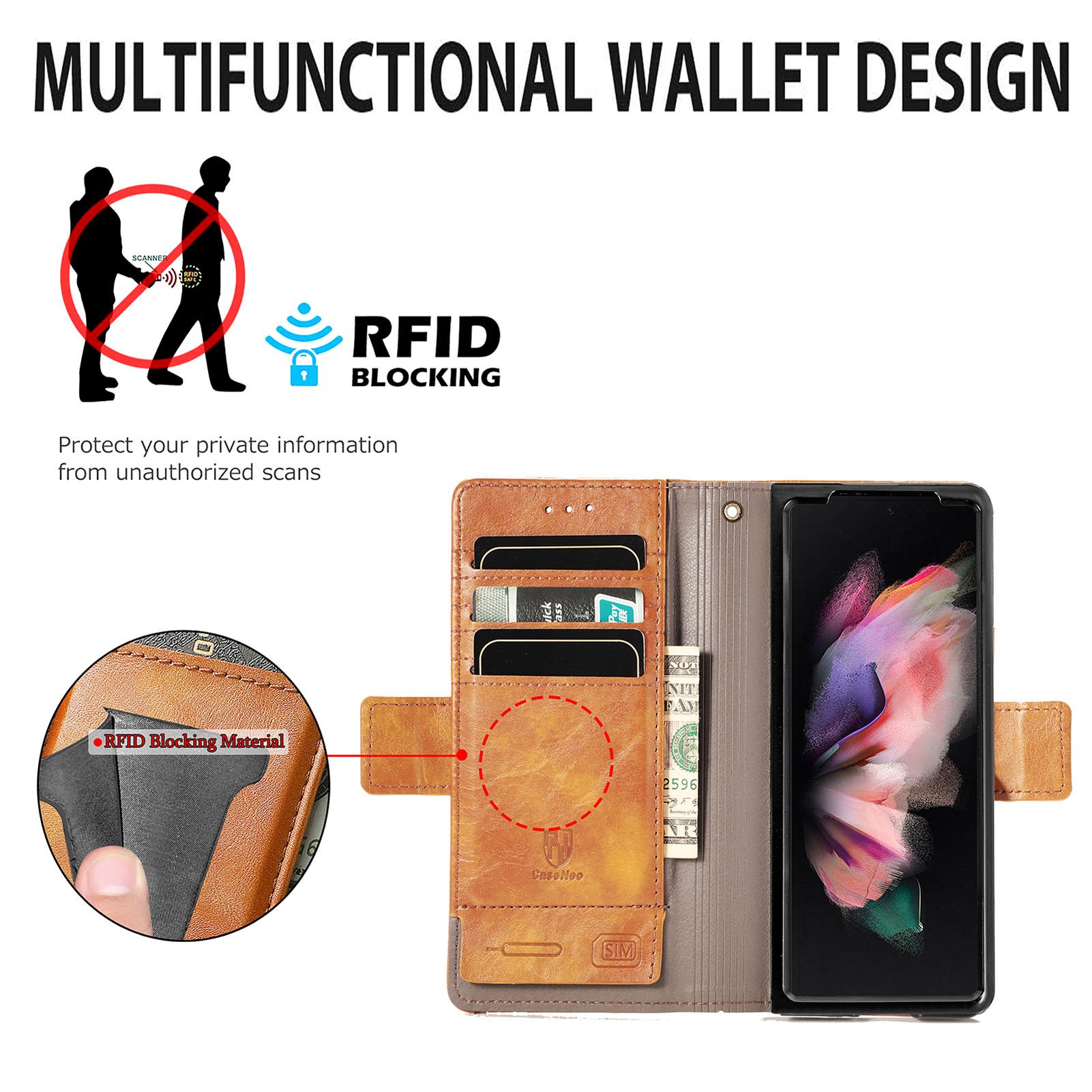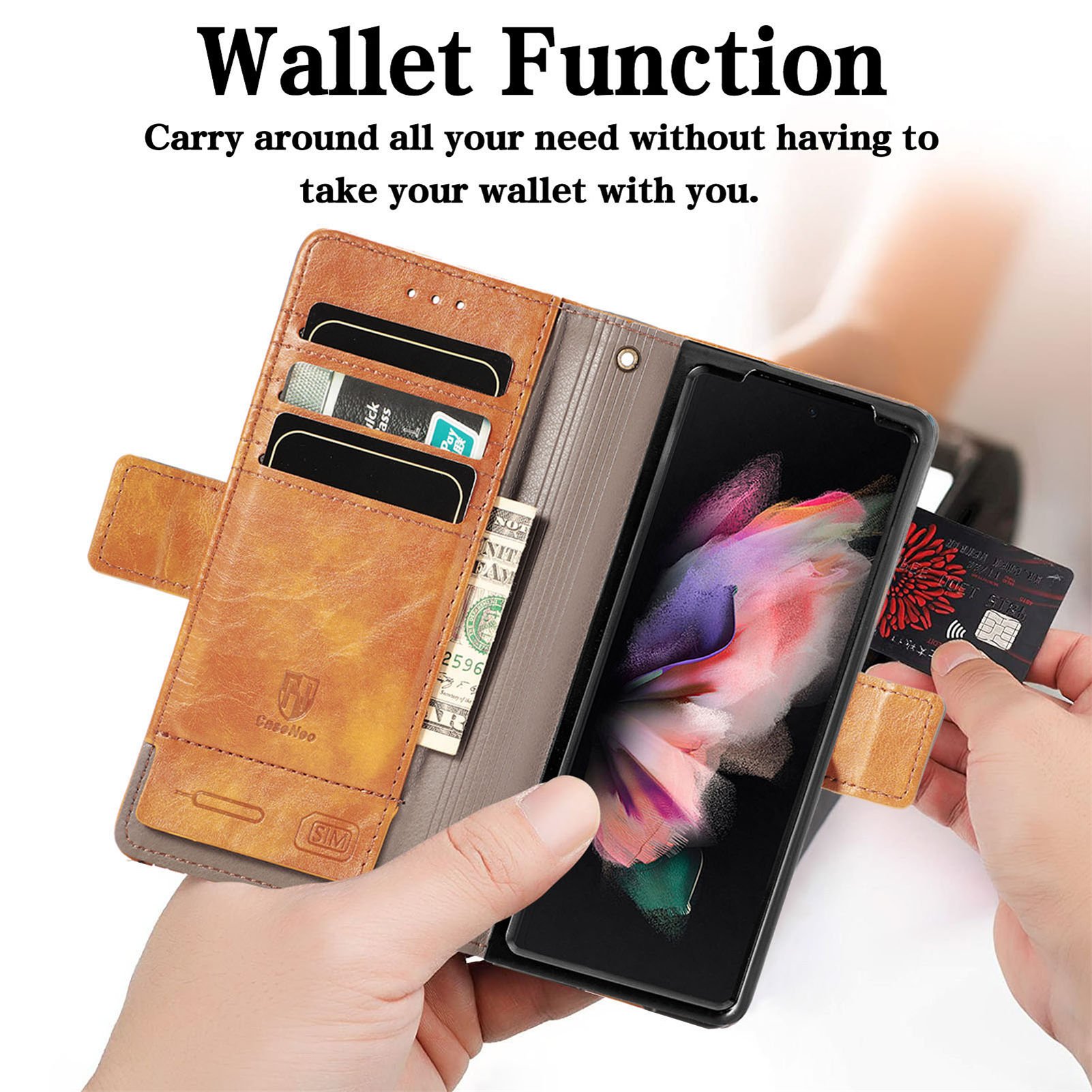 Samsung Galaxy Z Fold 3 Wallet Folio Case Magnetic Closure RFID Blocking Card Slots Case
