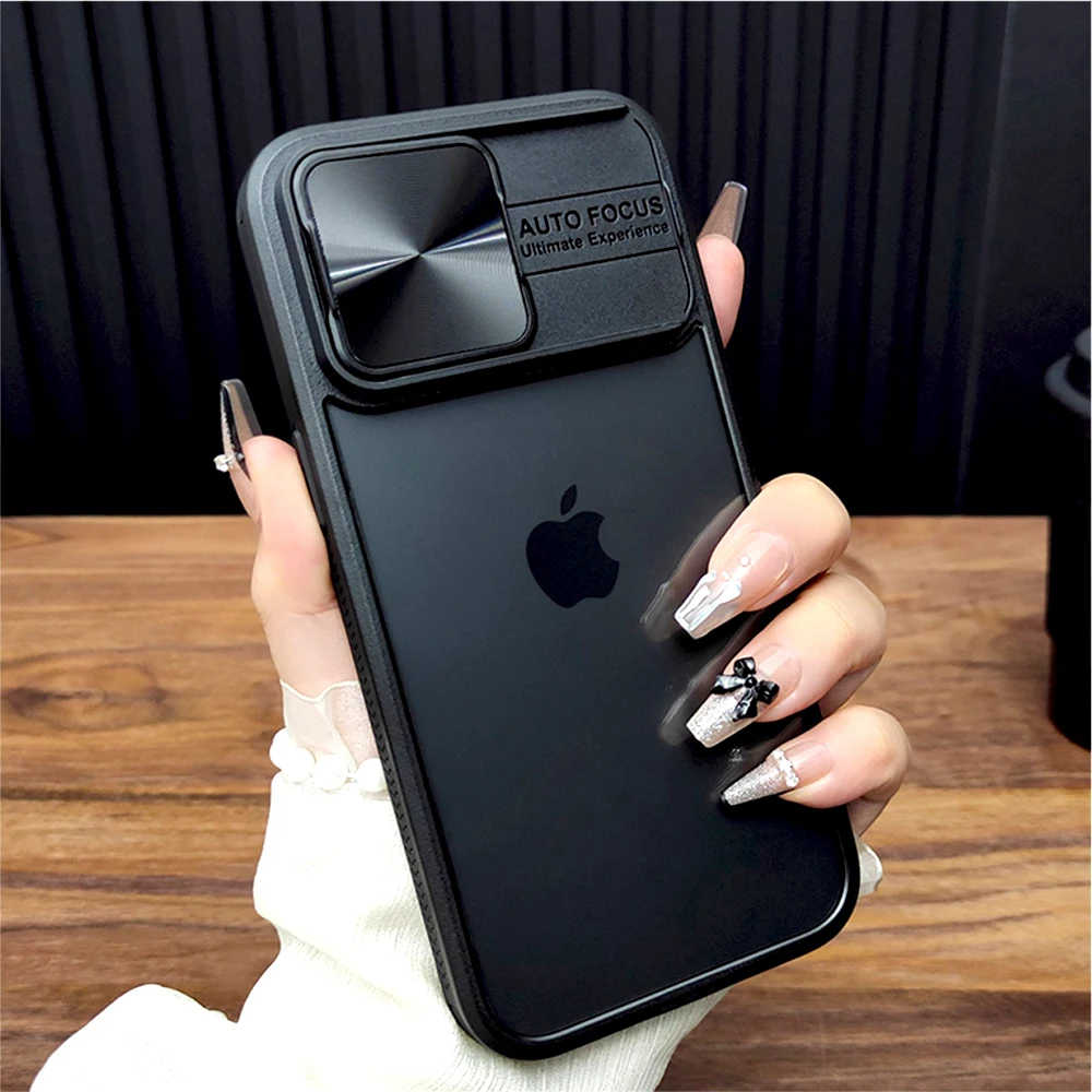 Schiebe Kamera Cover Hülle für iPhone 16 15 14 13 12 Pro Max transparent TPU Schutz