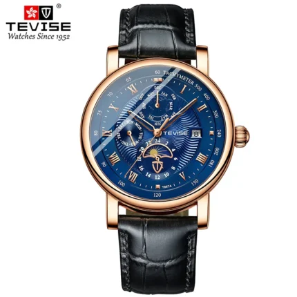 TEVISE Herrenuhr Automatikuhr Mechanische Uhr Automatik Gold Edelstahl Band