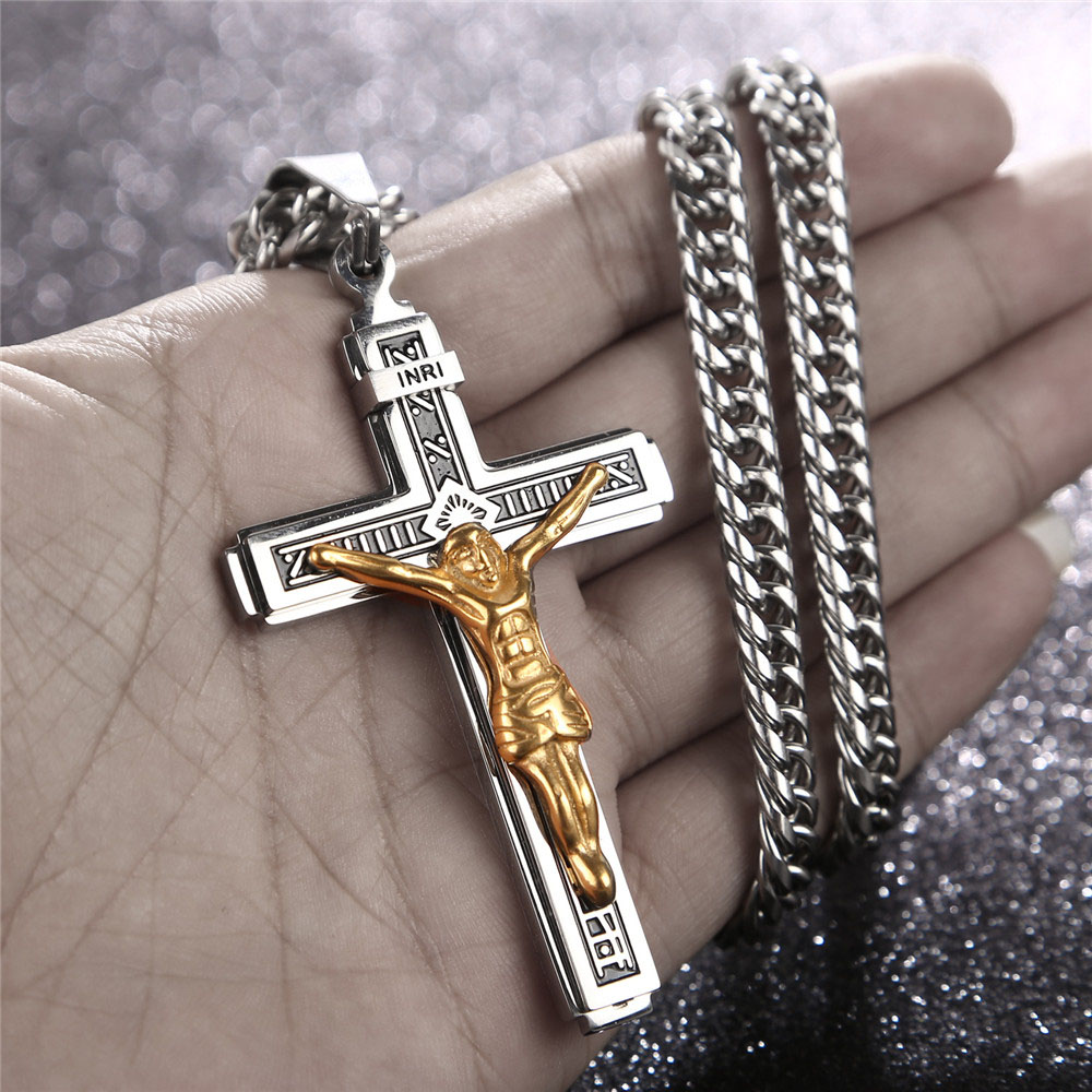 Edelstahl Anhänger Kreuz Christus Jesus Christus Kruzifix Halskette Schmuck Schmuck