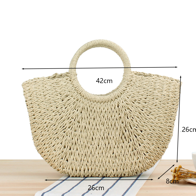 Sommer handgefertigte Taschen für Frauen Strandwebige Damen Strohbeutel verpackt Strandtasche Mondform geformtes Obergriff Handtaschen