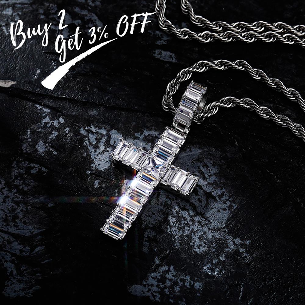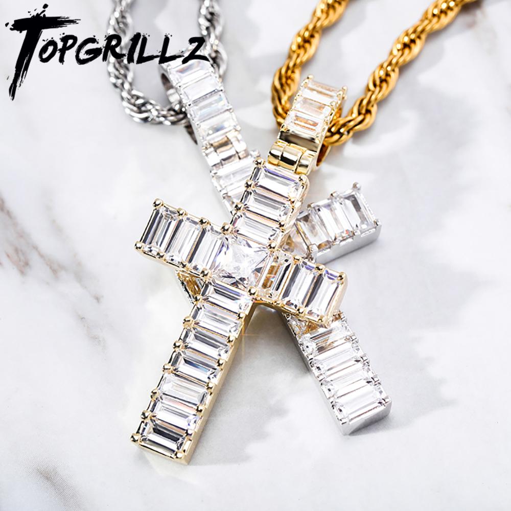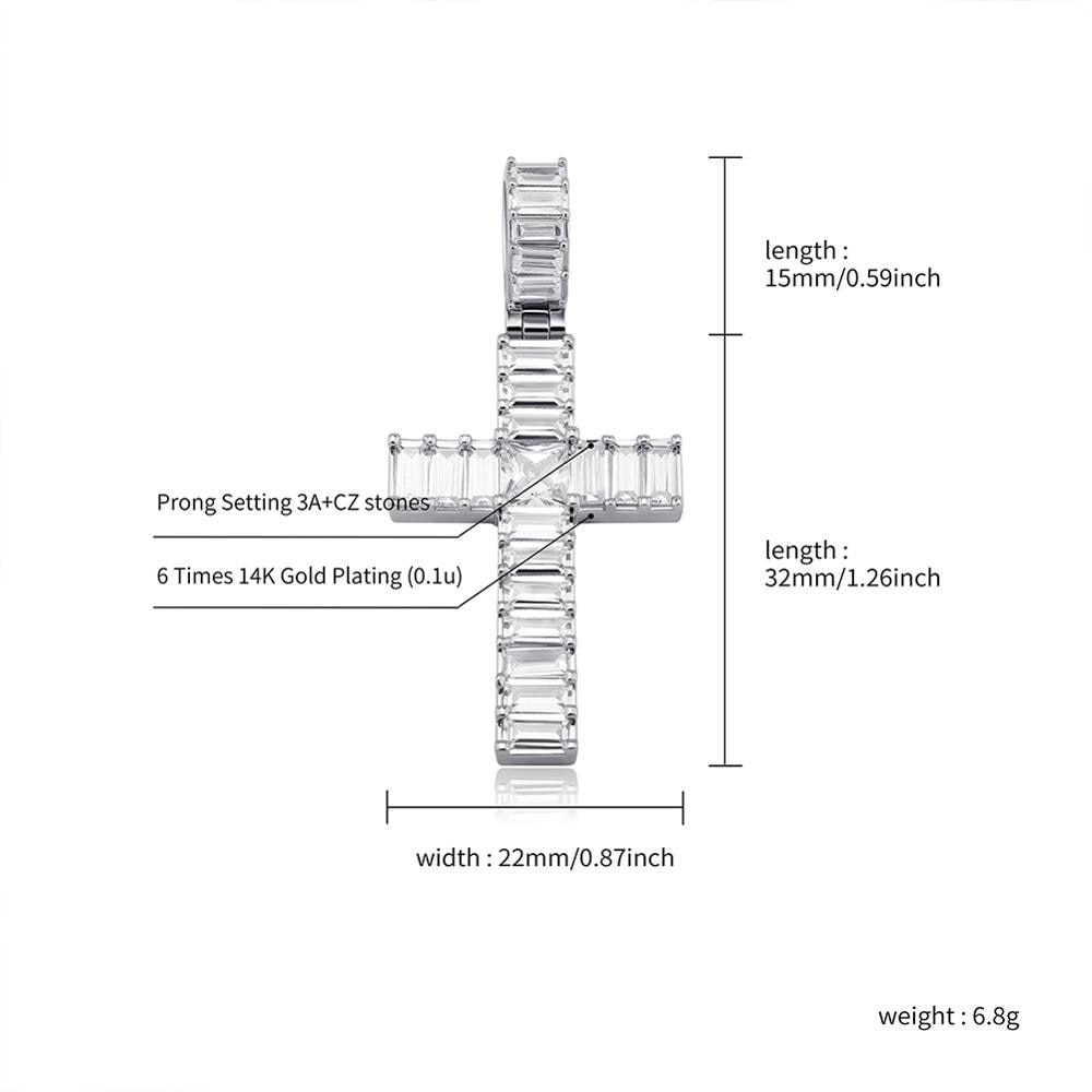 TOPGRILLZ Hip Hop Cross Pendant With Baguette Stone Micro Pave Prong Setting Iced Cubic Zirconia Fashion Jewelry Gift Men Women