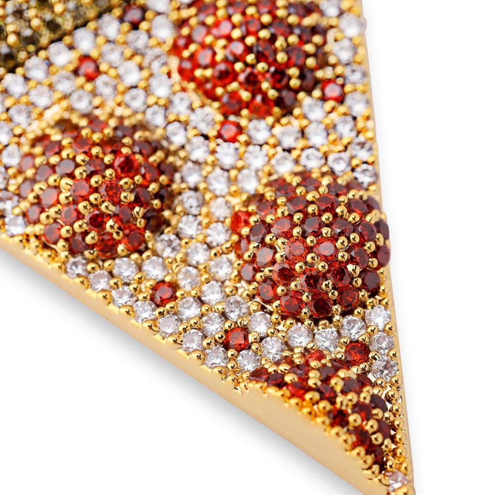 Machen Sie sich bereit, den Schmuck Ihres Lebens anzuziehen! Wir präsentieren Ihnen den TOPGRILLZ Iced Out Pizza Anhänger & Halskette. Diese atemberaubende Halskette und Anhänger sind in den Materialien Kupfer, Gold und Silber erhältlich. Ein perfektes Geschenk für alle Hip-Hop-Fans!