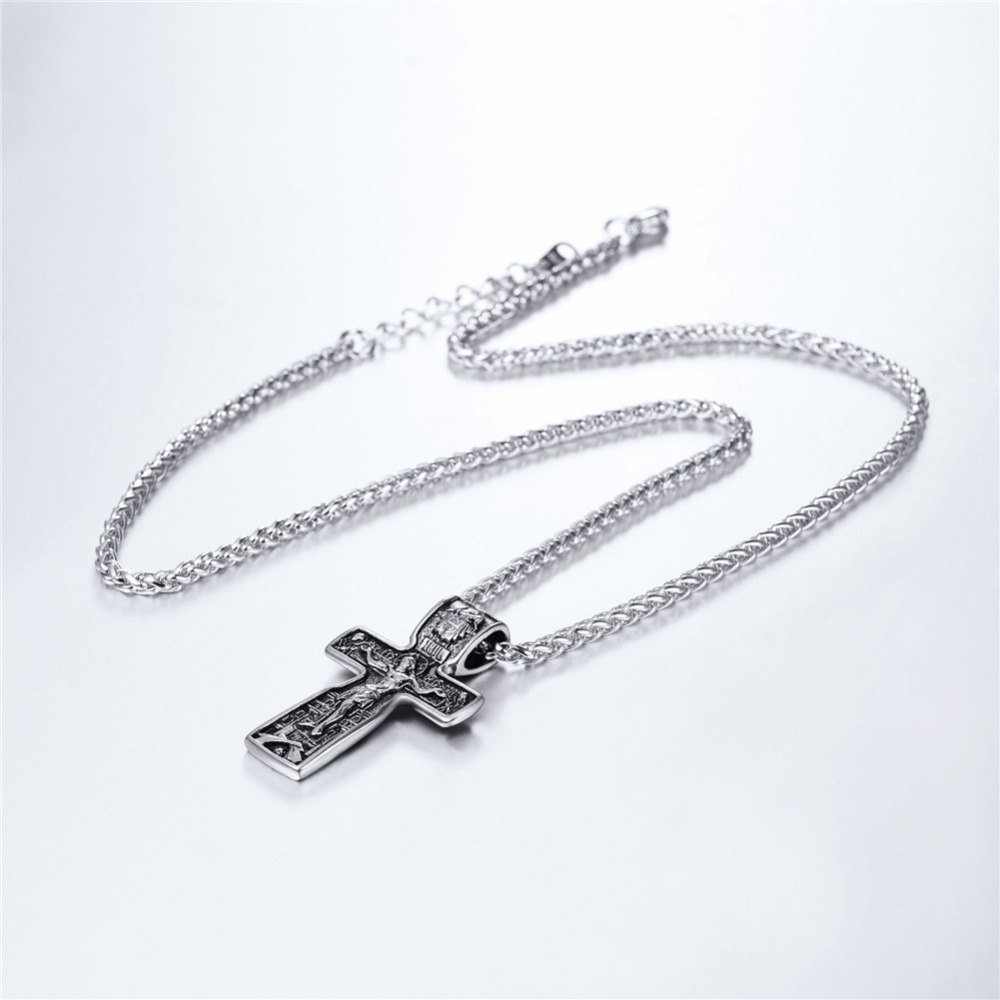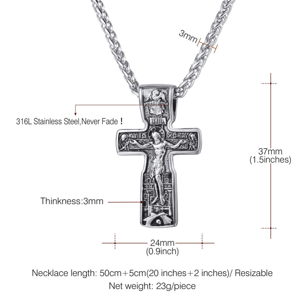 Kruzifix Jesus Kreuz Anhänger & Halsketten Gold Farbe Edelstahl Kette Vintage Katholischen Kirche Religiöse Männer Schmuck
