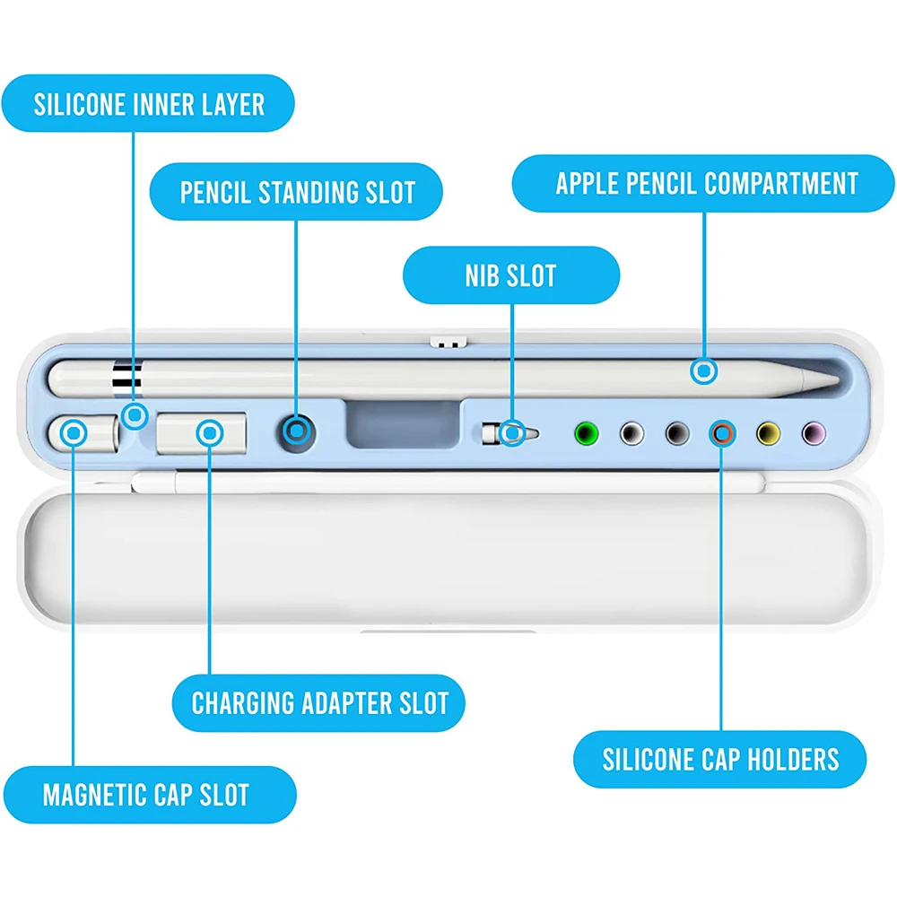 Aufbewahrungsbox für Apple Pencil 1 2 Generation ABS Silikon Magnet Weiß Blau