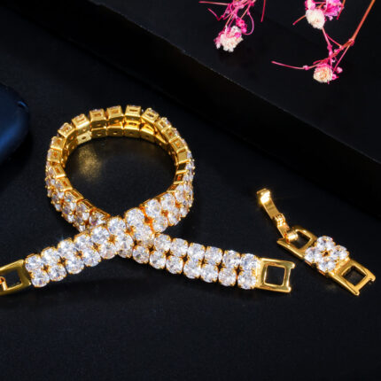 Unisex Tennisarmband in Gelbgold mit funkelnden Zirkonia-Steinen