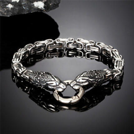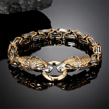 Armband Herren Königskette Wikinger Drachenkopf Gold Edelstahl Schlange Nordic