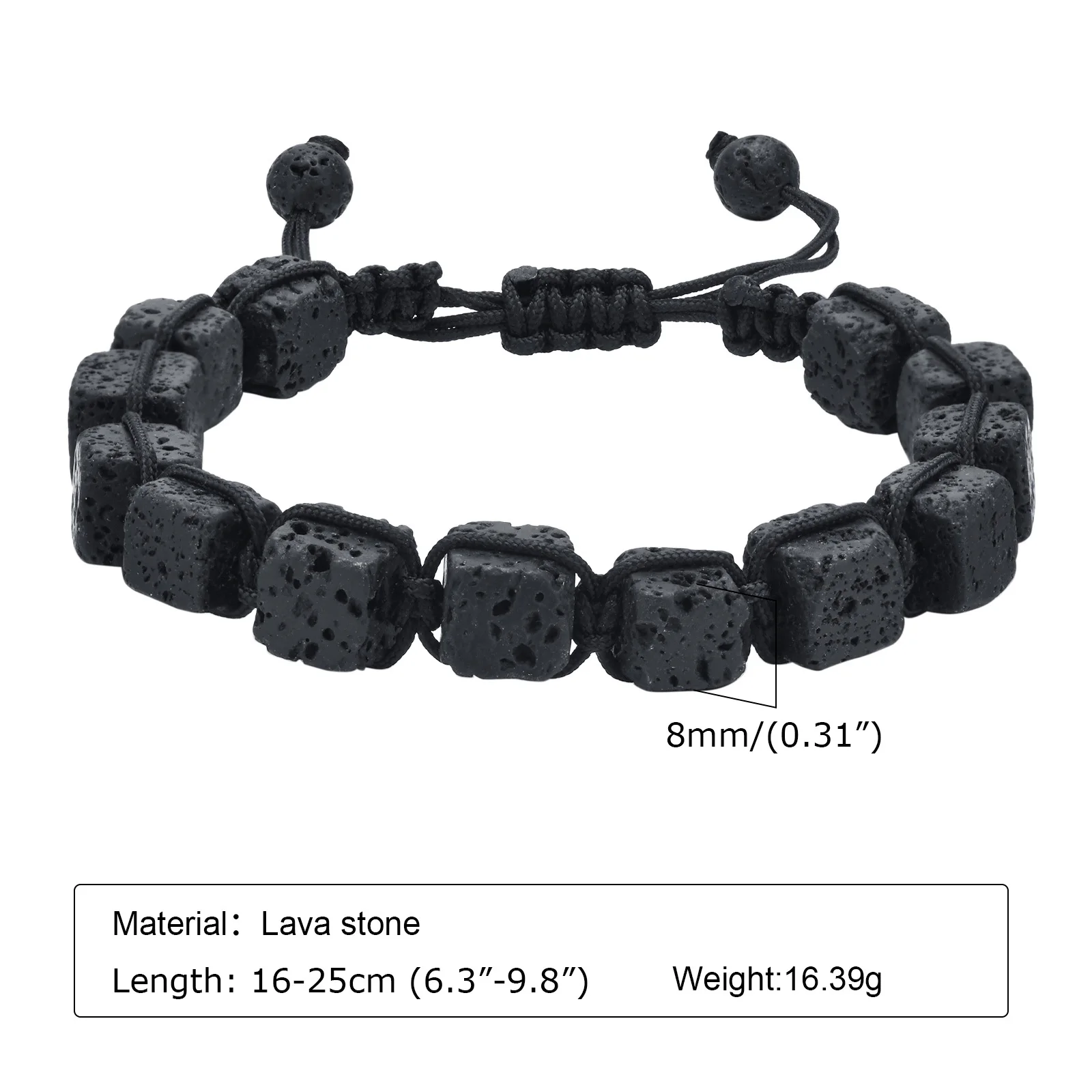 Armband Herren Lavasteinoptik Schwarz 8mm quadratische Perlen elastisch